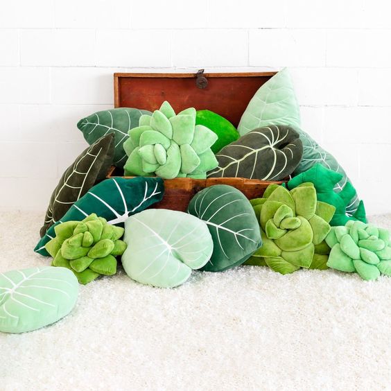 Si eres de las que le encantaría tener plantas en su casa pero nomás no se te da cuidarlas y terminas mandándolas al cielo de las plantas, entonces quizá la opción para ti sean los cojines en forma de plantas, son hermosas, le aportan ese verde lindo que quieres en tu hogar y no requieren cuidado alguno.