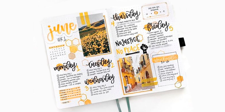 Si tu cuaderno es pequeño, intenta usar una página por semana, así ahorras espacio.