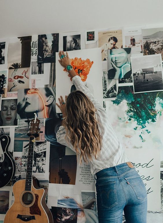 Crea un collage con posters, periódico, hojas de revistas o impresiones de tus cosas favoritas.