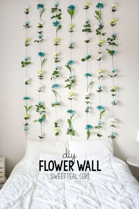 También puedes comprar tiras de flores artificiales y llenar la pared por completo.