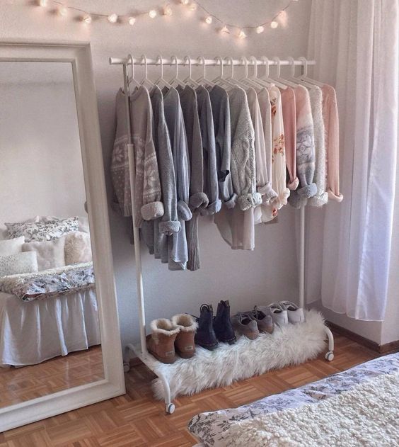 Trata de que la pared detrás de tu armario siempre sea blanca, así los colores de tu ropa no saturará tu habitación.