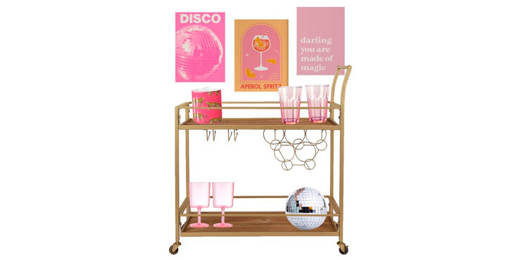 Si no tienes carrito, puedes poner una repisa como esta y decorar la parte de arriba o poner ahí tus accesorios.