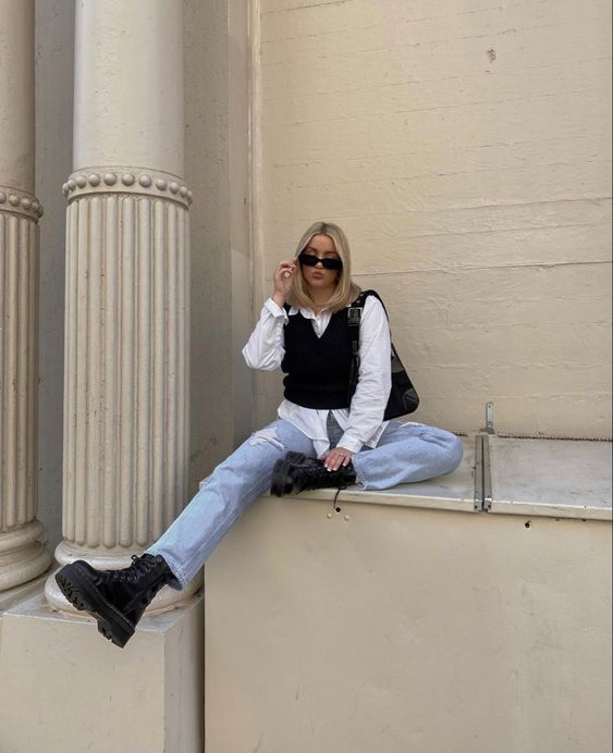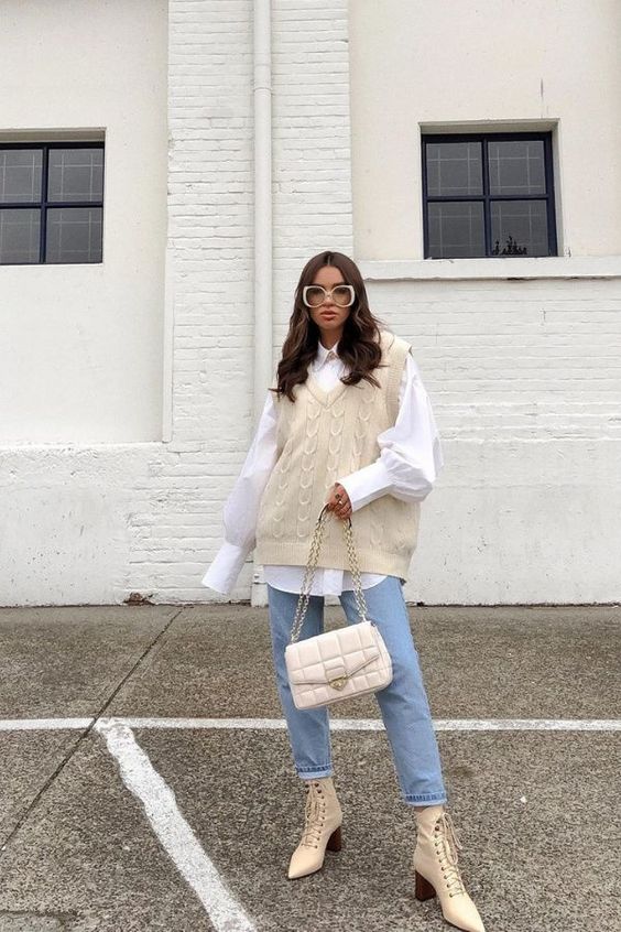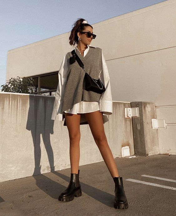 Ideas para usar juntos tu camisa y chaleco oversized