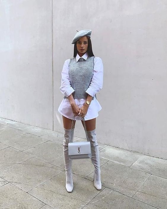 Boina y botas súper extra largas.
