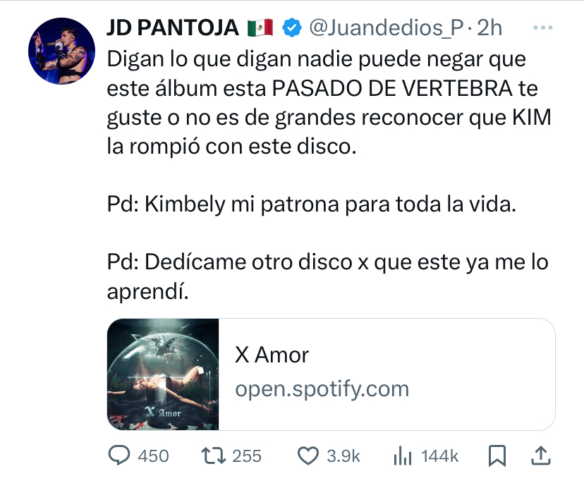 Y esta vez el que se la pasa genere y genere cringe es Juan de Dios, quien quiere seguir aferrado a la mentira de que está separado de Kim. Y en este contexto él manda mensajes ridículos apoyando a Kimberly, que no tienen sentido con lo que se supone ocurrió; una infidelidad.