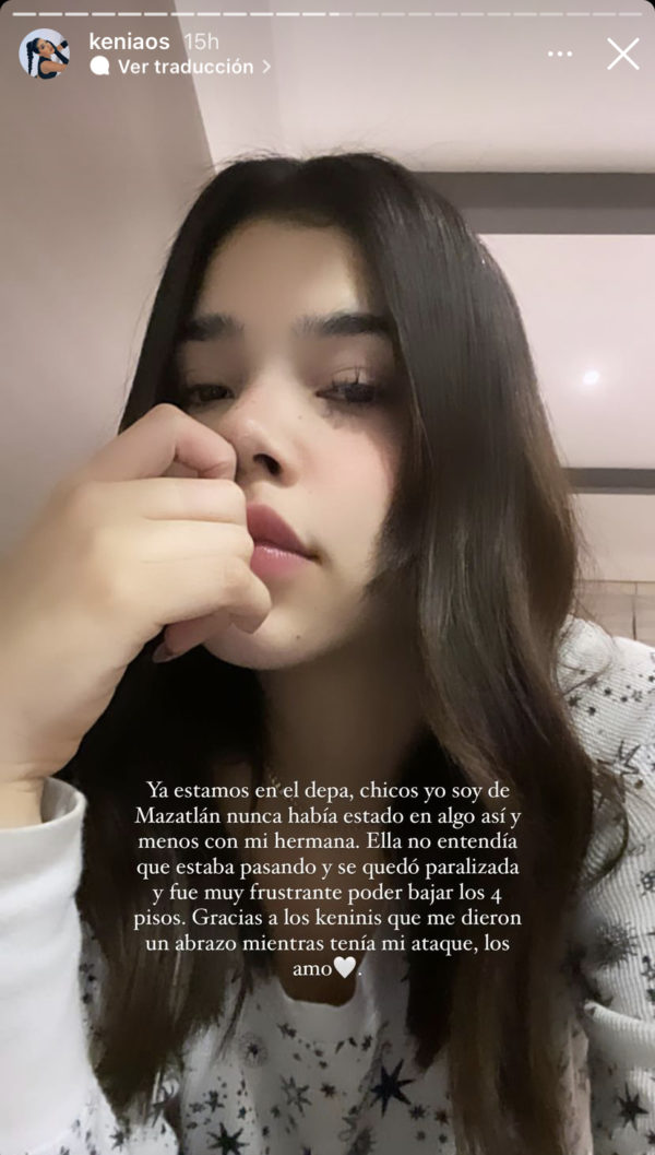 Kenia se encontraba con su hermana Eloisa, y en cuanto sintió el temblor, salió corriendo, bajó cuatro pisos y cuando se sintió a salvo, dejó aflorar los sentimientos que el pánico y el estrés le ocasionaron.