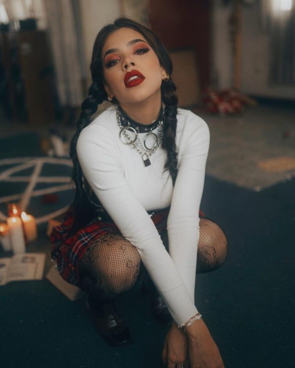 Como no puso absolutamente nada en la descripción de esta sesión de fotos, mas que su código de descuento para Shein, dejó que nuestra imaginación volara. Unos pensaron que se trataba de el disfraz de una muñeca diabólica mientras otros coincidieron en afirmar que se trataba de una bruja adolescente.