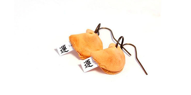 Mini galletas de la fortuna convertidas en preciosos aretes.