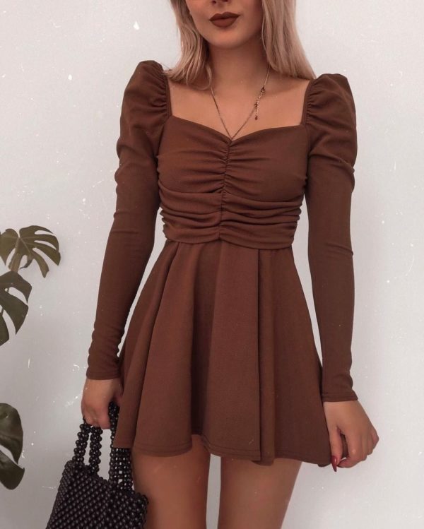 En caso de no saber con qué combinar tus prendas, un vestido café te combinará con accesorios y zapatos negros, blancos y beiges.