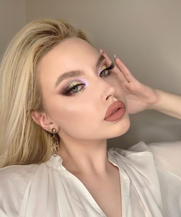Labios neutros, sombra café ¡Pero! Con un toque trendy y original, como una sombra apastelada y tornasol, que te dará un aire de soft girl sin salir de lo formal.