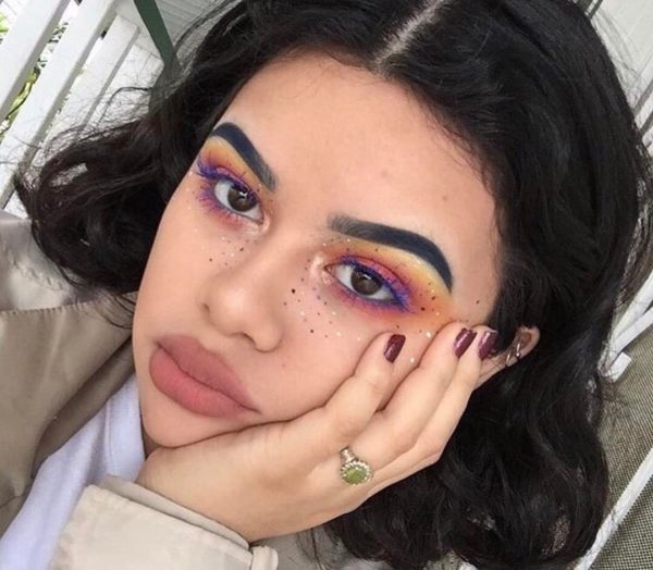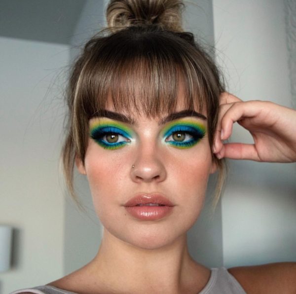 Sombreado con colores intensos. Llevar un outfit negro o grisáceo se presta apara usar maquillajes llenos de color, aprovecha y usa las sombras más intensas de tu paleta.