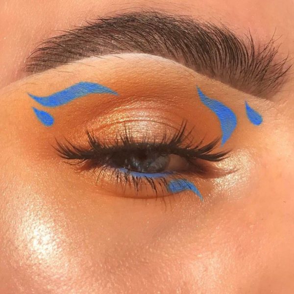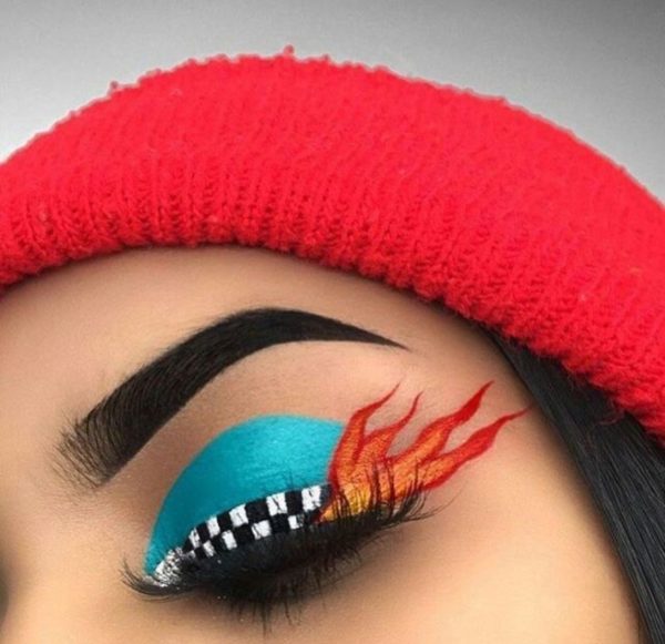 Si tienes varios delineadores de colores, no te conformes con un eyeliner, haz todo una flama caricaturesca en tu párpado.