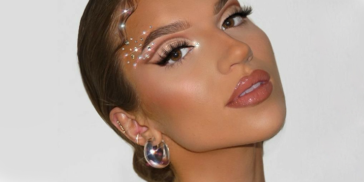 Eyeshadow café con piedritas strass, una opción soft para una graduación de día.