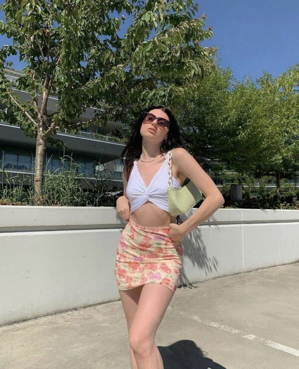 Deja que la primavera se apodere de tus looks con una falda pastel.