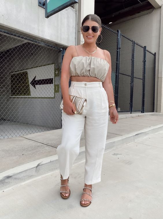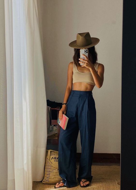 Los pantalones anchos se ven preciosos con sandalias. Si te quedan largos, mándalos a arreglar para que puedas lucir así.