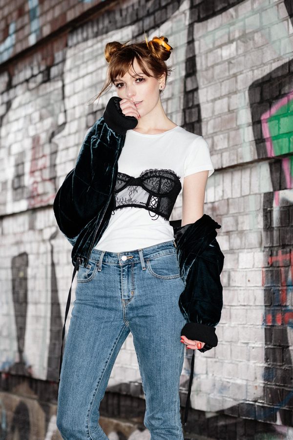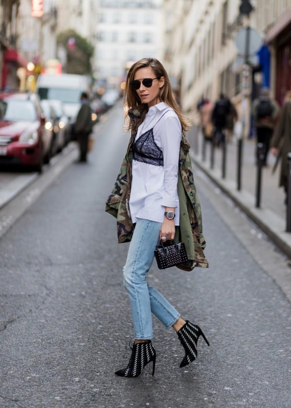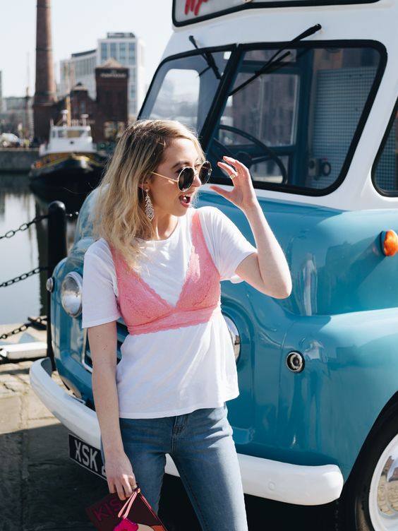 El outfit más casual y sencillo para disfrutar de esta nueva tendencia es añadirlo a un look súper clásico, osea jeans y blusa blanca ¡Es todo lo que necesitas para usar tu bralette encima!
