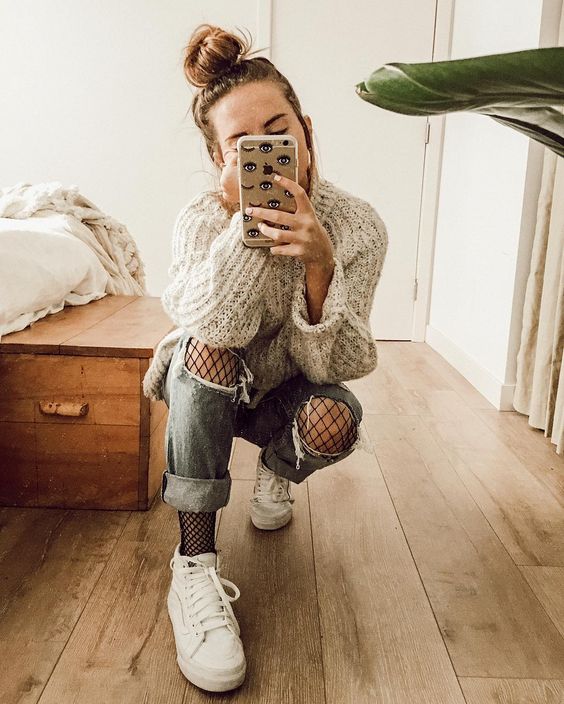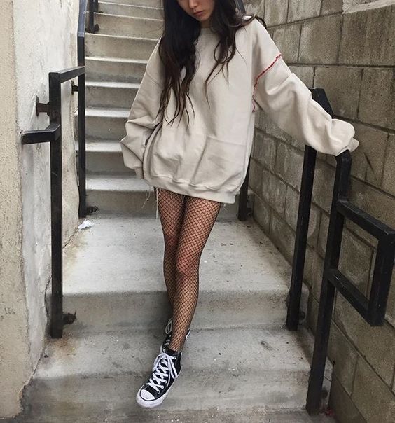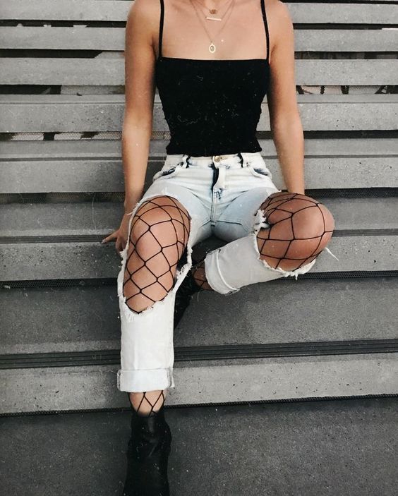 Las medias de red abren nuevas opciones de outfits con prendas más holgadas y diferentes a lo que estás acostumbrada a usar. Los boyfriend jeans y los suéteres XL siempre serán los mejores aliados de esta prenda-accesorio.