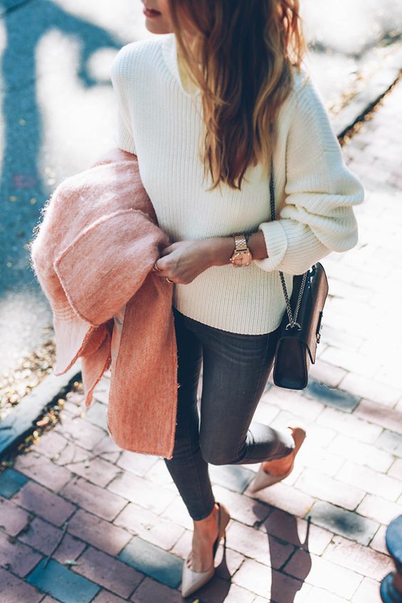 Tus skinny jeans se mueren por ser combinados con prendas en tonos nude, aquí la prueba.
