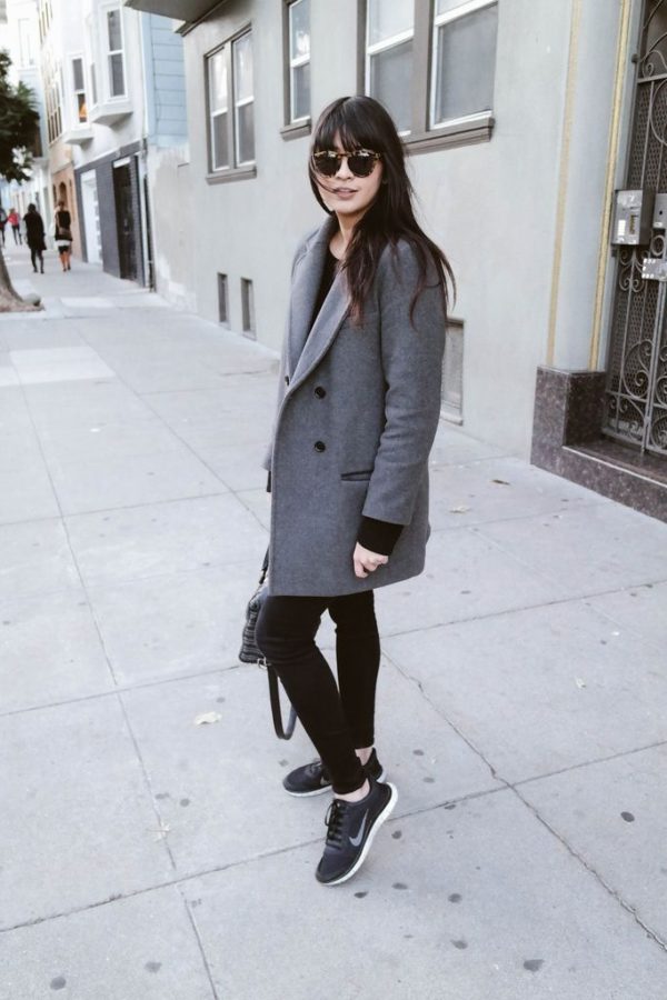 Un balance perfecto gracias a los ‘nikes’ y al abrigo gris. Está increíble para días nublados o lluviosos.