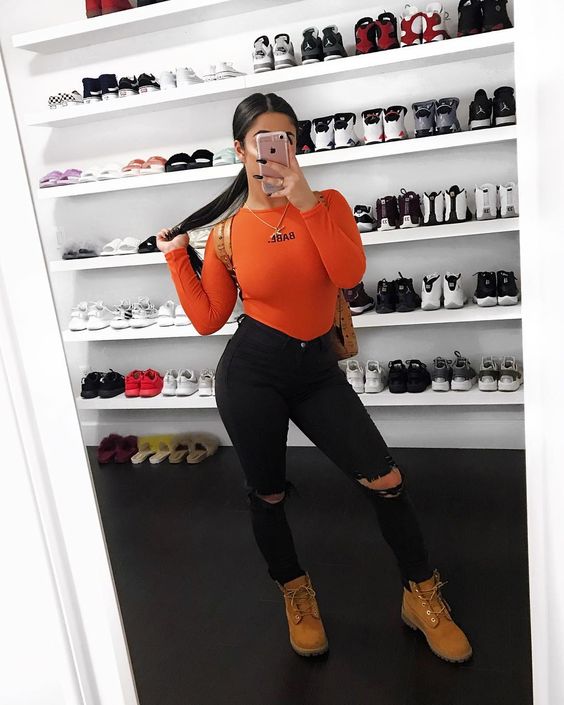 Si tienes una botas Timberland, no puedes dejar pasar la oportunidad de vestirte así. Mira lo llamativa que es para la vista esta combinación… ¡se ve increíble!