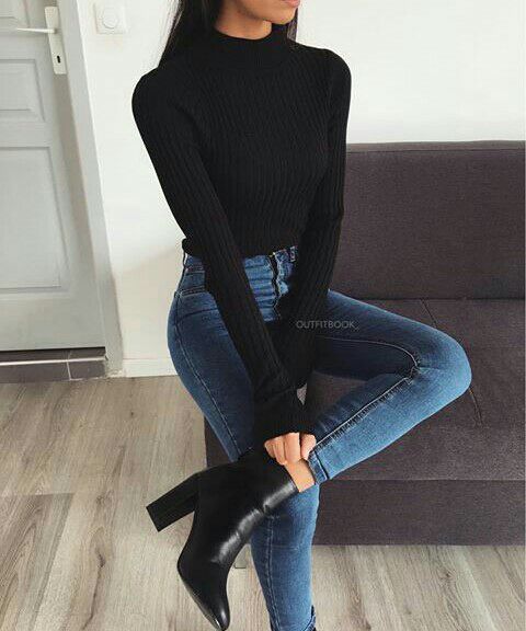 Mira lo fabuloso que se ven estos botines abiertos combinados con un look ‘all black’.