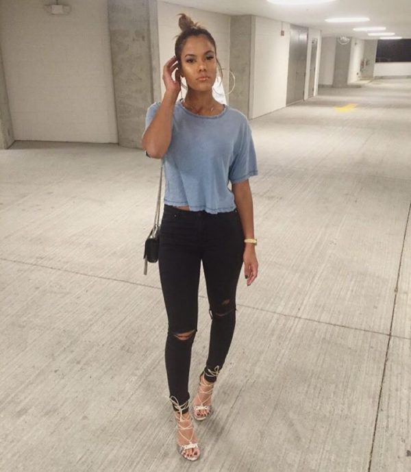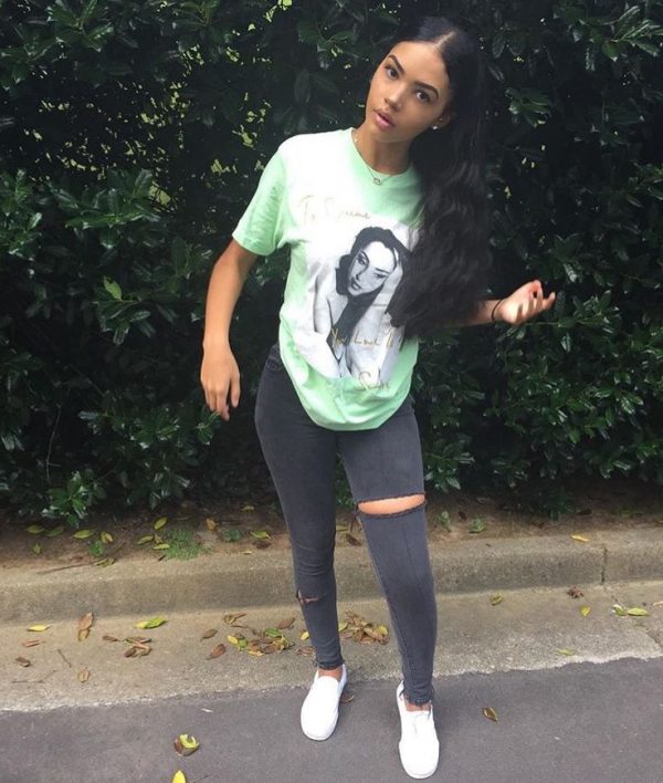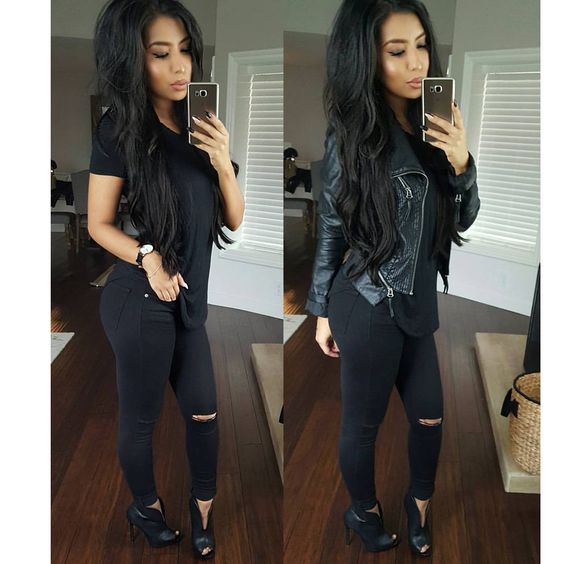 ¿Ya has intentado combinar jeans negros con playeras en color menta? Si no, aquí hay una muestra de lo bien que se ven.