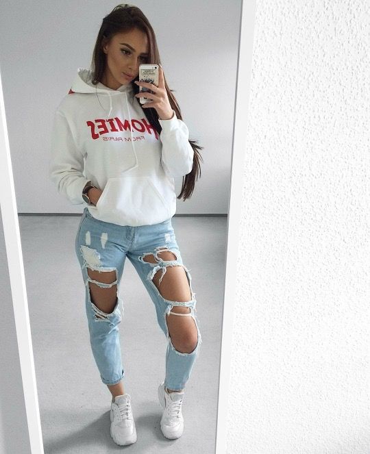 Un look súper sencillo y con mucho porte. ¡Recuerda fajar tu sweatshirt si tus pantalones son a la cintura! Se ve mil veces mejor.