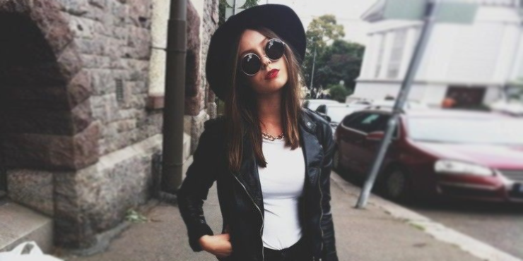 Si quieres lograr un outfit elegante pero casual para el día, con un vestido negro, cinturón beige o dorado y gafas con sombrero harás el match perfecto. Te recomiendo tomes prestada la idea de esta chica de pintar sus labios en rosa para verte aún más atractiva.