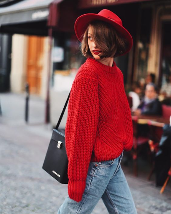 Yo te aconsejo que si lo que buscas es literal impactar a primera vista, elijas un color neutro que predomine, y el rojo úsalo para resaltar. Justo como lo hace la chica.