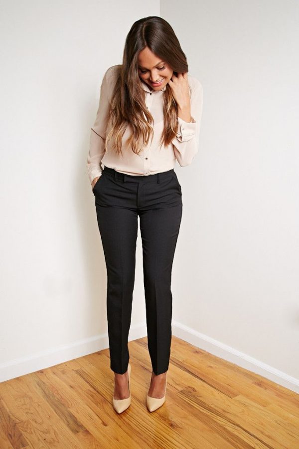 Los pantalones formales pueden ser tu salvación. Usa una blusa linda (no necesariamente tiene que ser una camisa), añade un blazer y unos lindos tacones. Puedes sustituir los zapatos altos por flats, pero no se verá tan elegante.