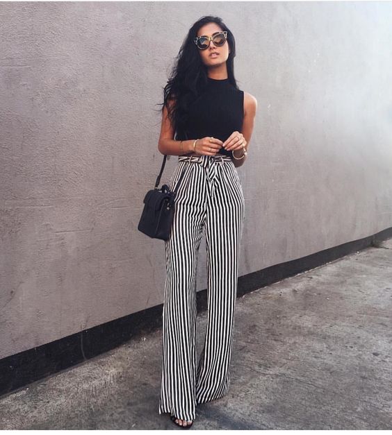 Un pantalón a la cintura es una excelente opción. Puedes usar una blusa linda o un top elegante. Añade sandalias con tacón para completar el look.