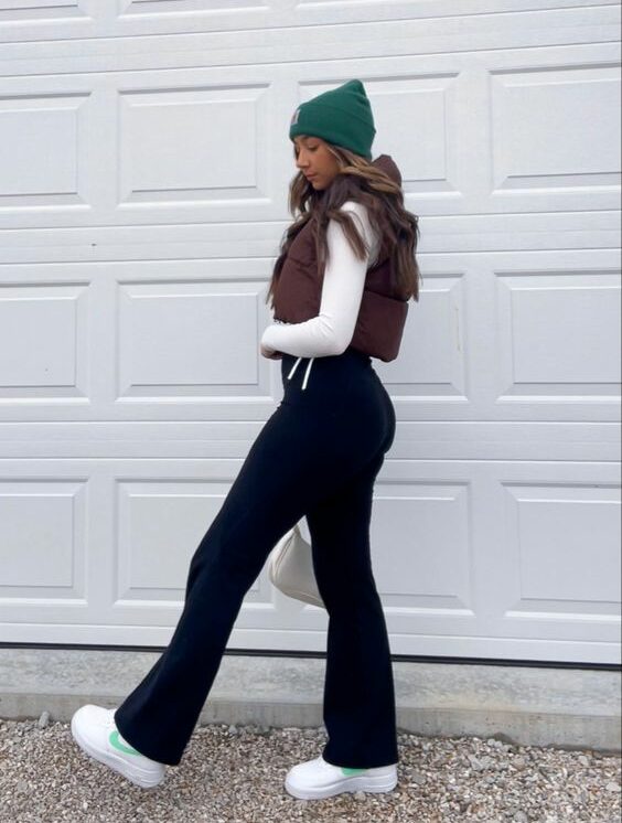 Unos hermosos leggings acampanados y un chalequito para no morir de frío y para guardar dulces en las bolsas. Hasta el gorrito puedes usar para acumular más dulces.
