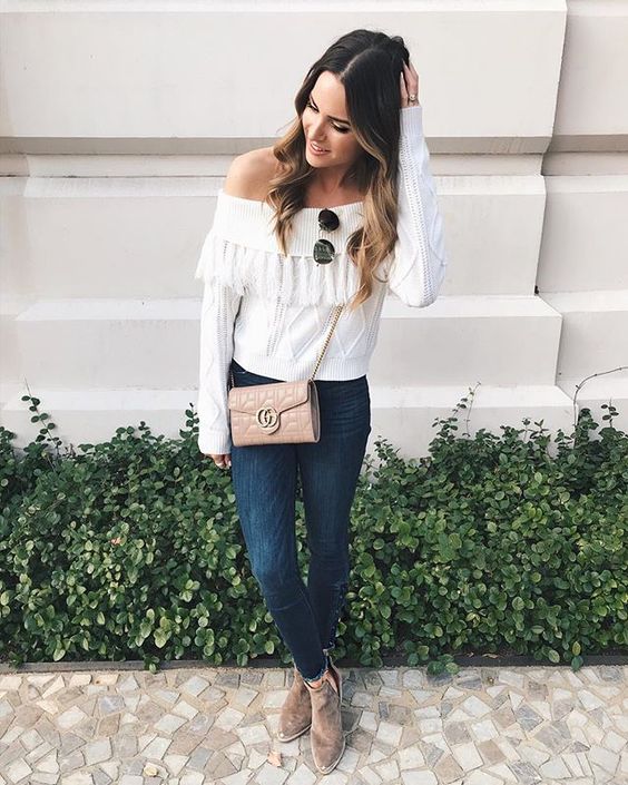 Blusas de tela gruesa sin hombros. Así te mantienes fresca y si baja la temperatura, un suéter sencillo arreglará el dilema.