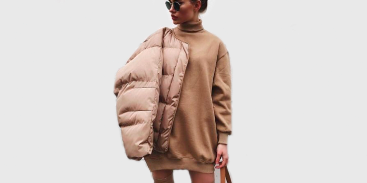 Un vestido tipo suéter. Los suéteres se hicieron para protegerte del frío, pero puedes comprar un suéter grande y holgado ¡Y convertirlo en vestido! Andarás calientita y segura de ti.