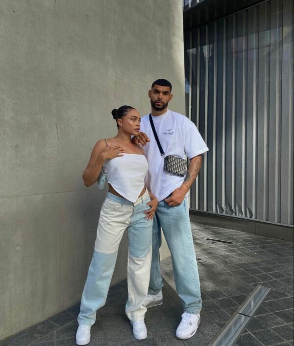 Jeans con top blanco, prendas que fácil tienen ambos en su closet.