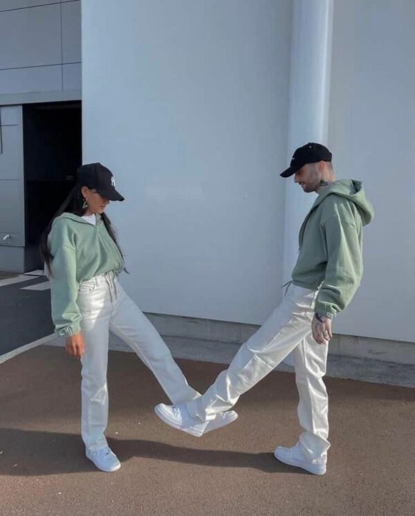Pants del mismo color, una prenda unisex que pueden adaptar.
