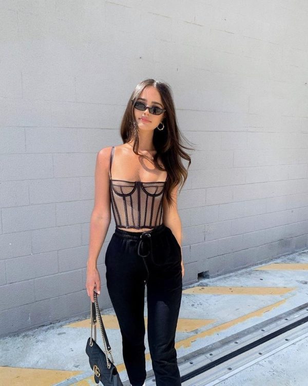 Corsé y jeans, para bailar cómodamente pero luciendo guapísima.