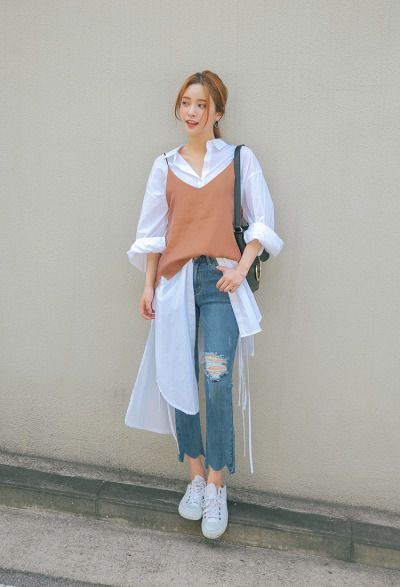 Una camisa oversized y tu mini falda favorita (deja que se vea un poco la camisa)