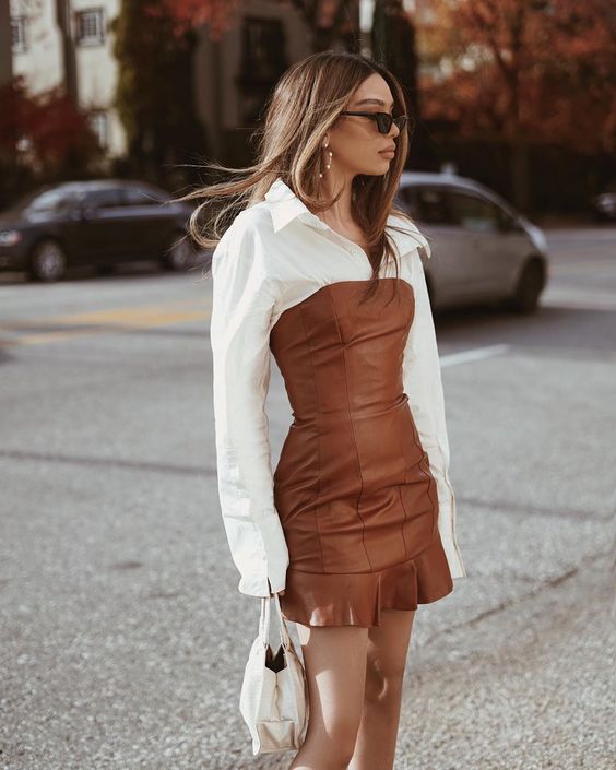 Una camia y tu vestido strapless.