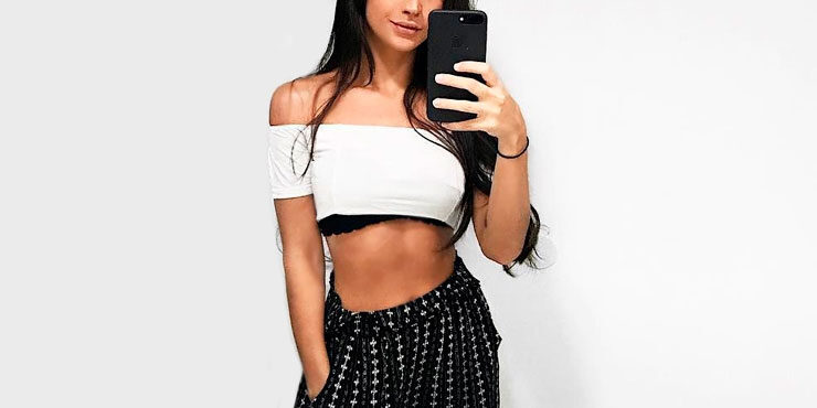 Con un crop top blanco (si no no tienes crop top, mete en tu bra parte de la blusa, como en la imagen)