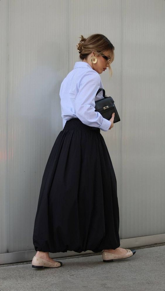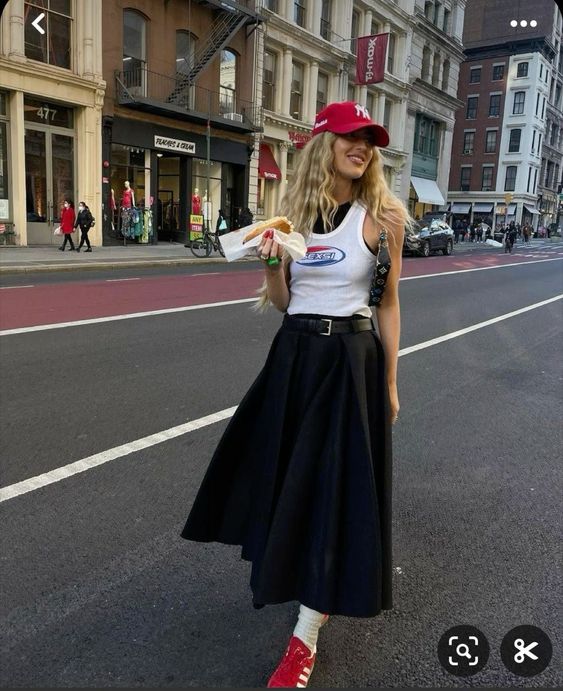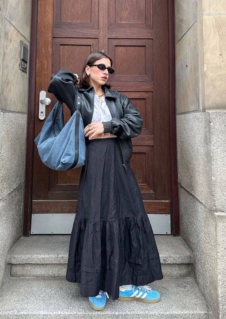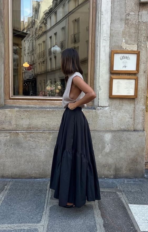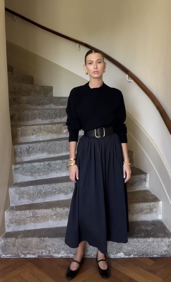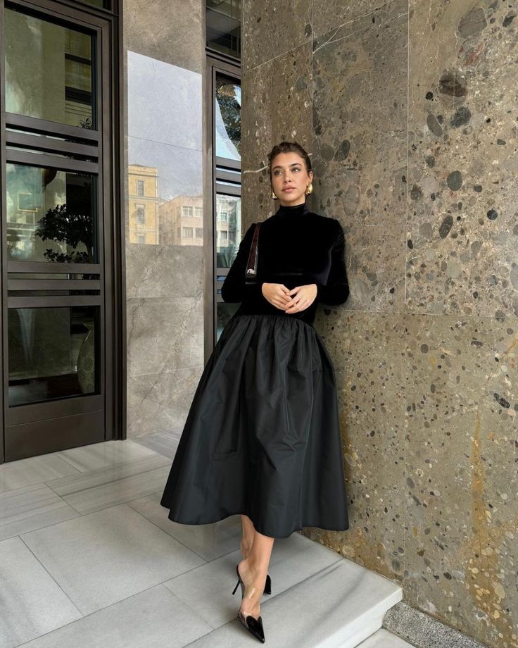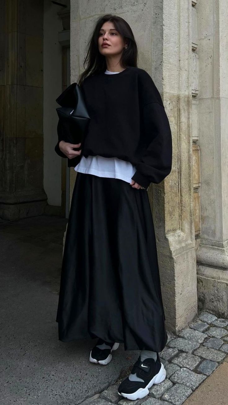 Las faldas no se guardan durante la temporada otoño/invierno, ¡no señoras y señores!, las faldas se usan también; con unas añadiduras como medias o calcetas pero se usan ¡claro que sí! Y mucho más las faldas largas, así que no hay pretexto para no verte así de hermosa, basta que te consigas una sola falda negra para obtener todo este abanico de opciones.