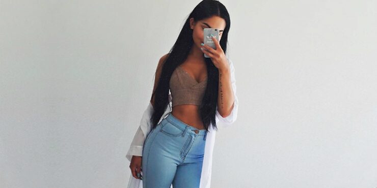 Si tienes jeans a la cintura no uses las playeras encima de ellos. Mételas por completo al pantalón.