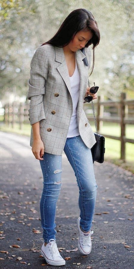 Añade prendas que jamás uses como blazers. Si no modificas tus demás prendas, tus jeans seguirán dándote la misma apariencia de siempre.
