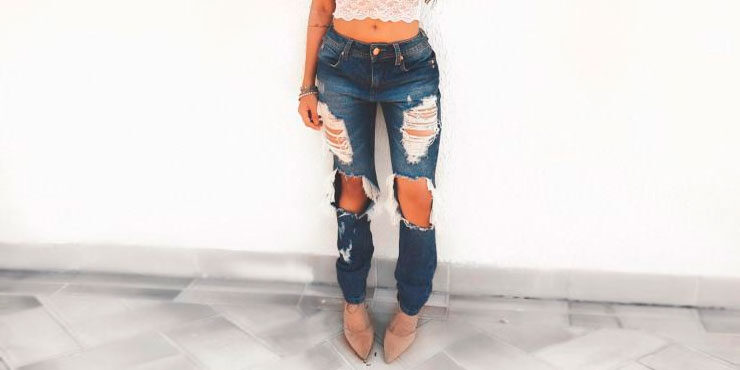 Añade medias de red o con diseños chulos debajo de esos jeans rotos.