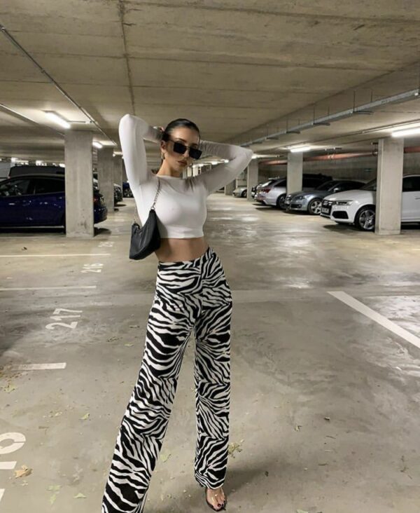 Tu zebra pants debe ser de tiro alto, así será más fácil combinarlo con crop tops y dar el efecto que buscamos.
