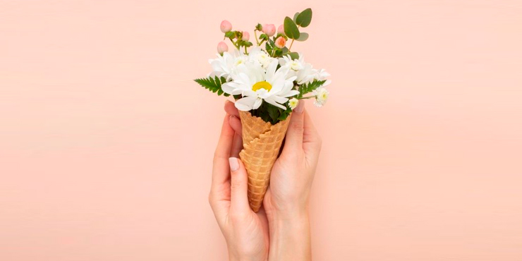Puedes comprar papel que simule un cono de helado y forrar la base del arreglo floral, ¡se ve divino!