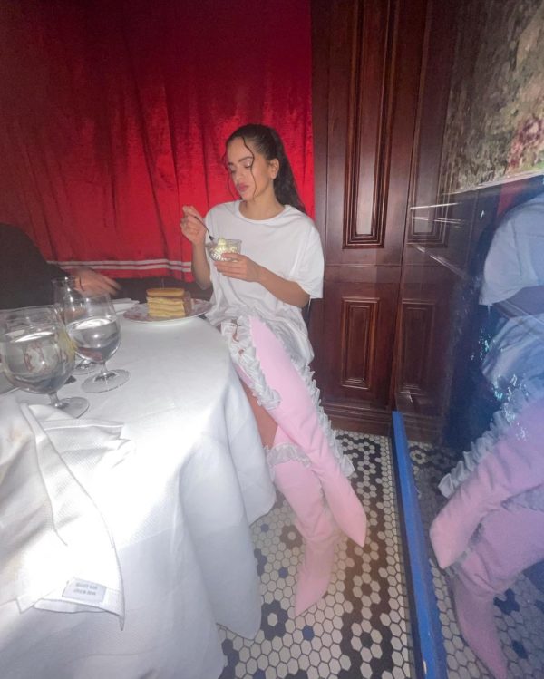 Bueno, pues nuestra querida Rosalía, nos ha traído de vuelta esos bellos recuerdos, pero ella no utilizó las puntas de la piñata para guardar sus dulces, sino para meter sus piernas. Obvio no de manera literal, pero es que es imposible ver esas botas de otra forma.