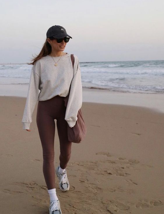 Con una sudadera blanca y un chaleco cortito en el mismo tono de tus legings.