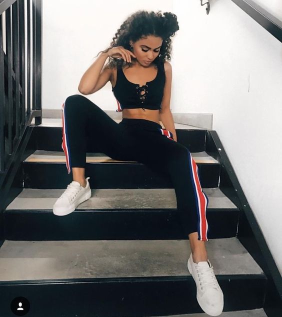 Si tienes un top o bra deportivo del mismo color de tu pants, no lo dudes y úsalo sin blusa alguna.
