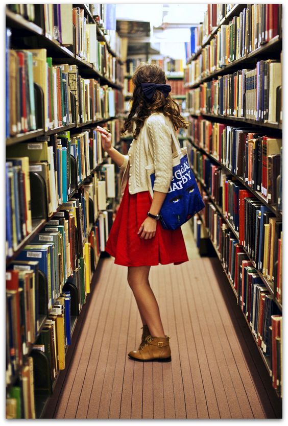 Si eres de las que ama ir a la biblioteca o a la librería, puedes obtener fotos realmente hermosas entre esos mágicos tomos.